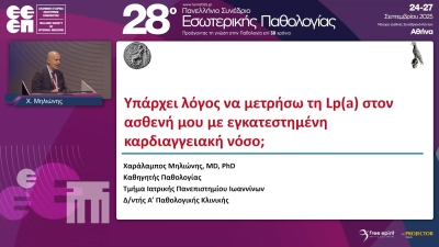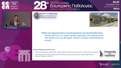 12:00-13:00 | Αμφιθέατρο Σκαλκώτας | ΚΛΙΝΙΚΟ ΦΡΟΝΤΙΣΤΗΡΙΟ Λάθη και παραλείψεις στη διαχείριση της δυσλιπιδαιμίας
