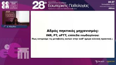 Aδρός πηκτικός μηχανισμός: INR, PT, aPTT, επίπεδα ινωδογόνου: Πώς εκτιμούμε τις μεταβολές αυτών στην καθ΄ ημέρα κλινική πρακτική; | Δ. Αδαμίδου