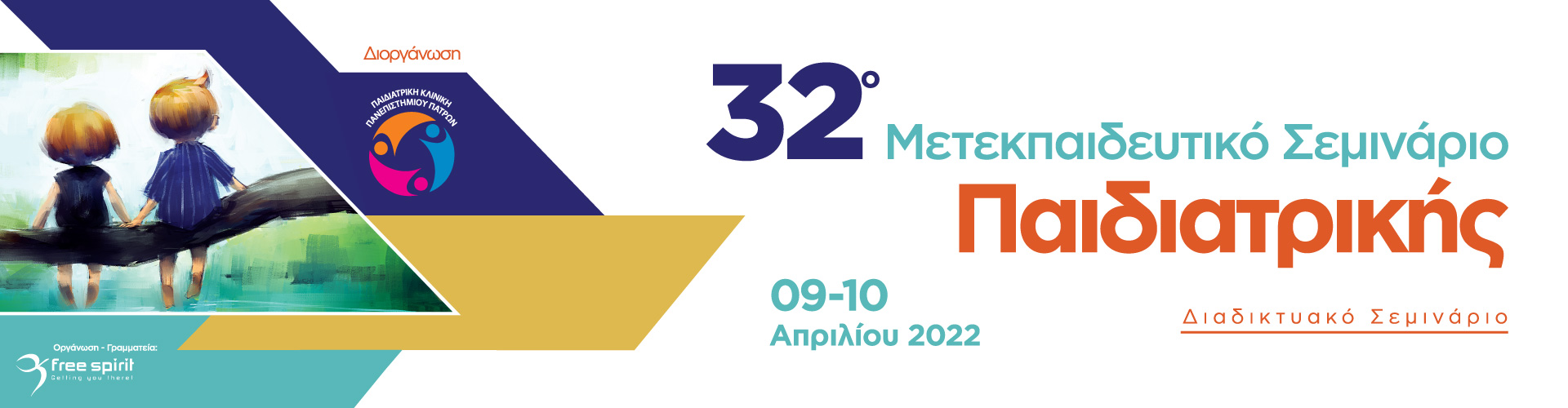 Σας ευχαριστούμε που συμμετέχετε στο 32ο Μετεκπαιδευτικό Σεμινάριο Παιδιατρικής, τo οποίo θα διεξαχθεί 9-10 Απριλίου 2022.