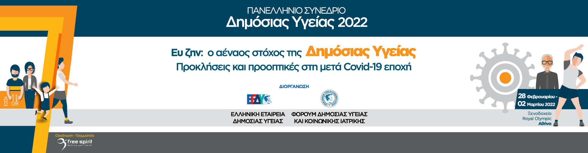 Με μεγάλη χαρά σας καλωσορίζουμε στο Πανελλήνιο Συνέδριο Δημόσιας Υγείας 2022. το οποίο θα διεξαχθεί 28 Φεβρουαρίου – 2 Μαρτίου 2022, στην Αθήνα.
