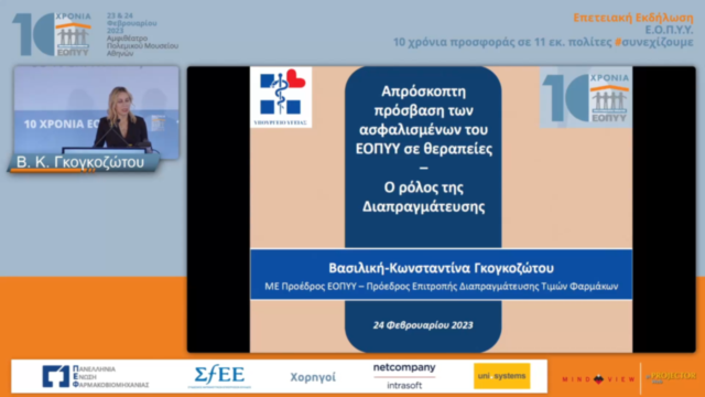 9:45-10:30 | ΣΤΡΟΓΓΥΛΟ ΤΡΑΠΕΖΙ Απρόσκοπτη πρόσβαση ασφαλισμένων του Ε.Ο.Π.Υ.Υ. σε θεραπείες - Ο ρόλος της Διαπραγμάτευσης