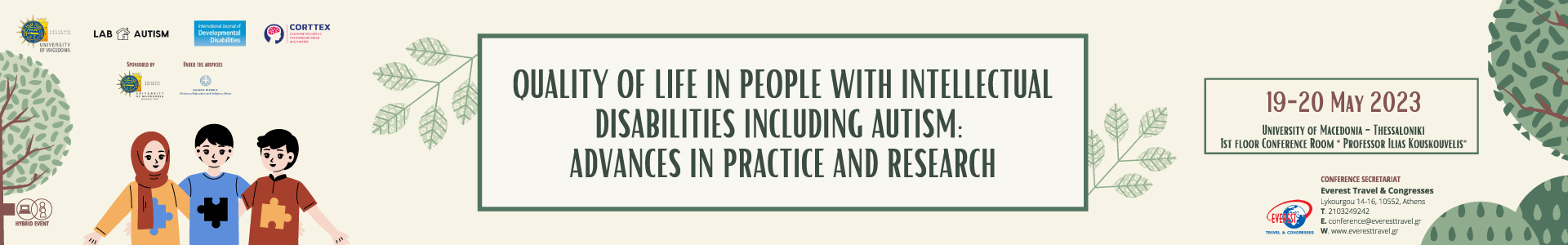 The Conference is organized by University of Macedonia, Department of Educational and Social Policy, Laboratory of Autism -Developmental Spectrum Disorders and Behavior Difficulties of the Human in collaboration with the International Journal of Developmental Disabilities and the British Society for Developmental Disabilities on May 19th and 20th, 2023, in a hybrid form (with physical presence in University of Macedonia and remotely through a link).