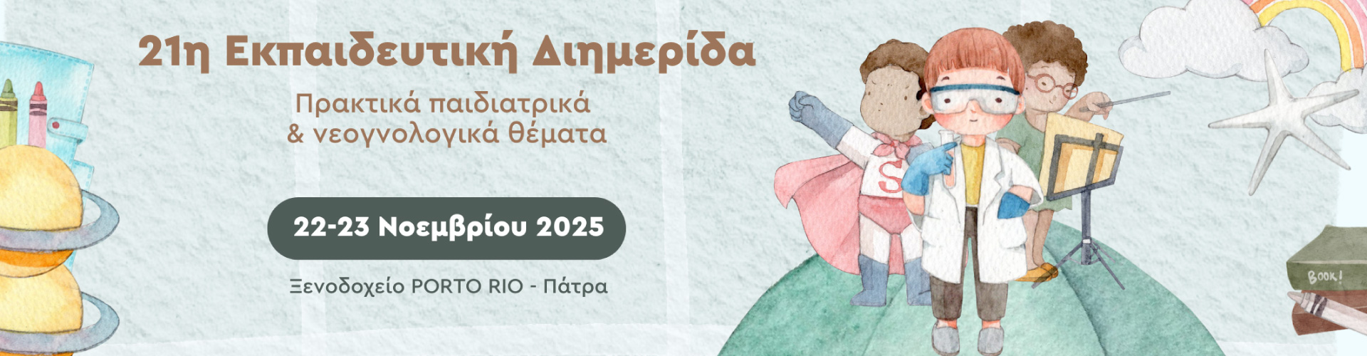 Η Παιδιατρική Κλινική του «Καραμανδάνειου» Γενικού Νοσοκομείου Παίδων Πατρών συνεχίζει και φέτος τη μακροχρόνια επιστημονική της δράση με τη διοργάνωση της 21ης Εκπαιδευτικής Διημερίδας με τίτλο «Πρακτικά παιδιατρικά & νεογνολογικά θέματα», στις 22 & 23 Νοεμβρίου 2025, στο ξενοδοχείο Porto Rio στην Πάτρα.