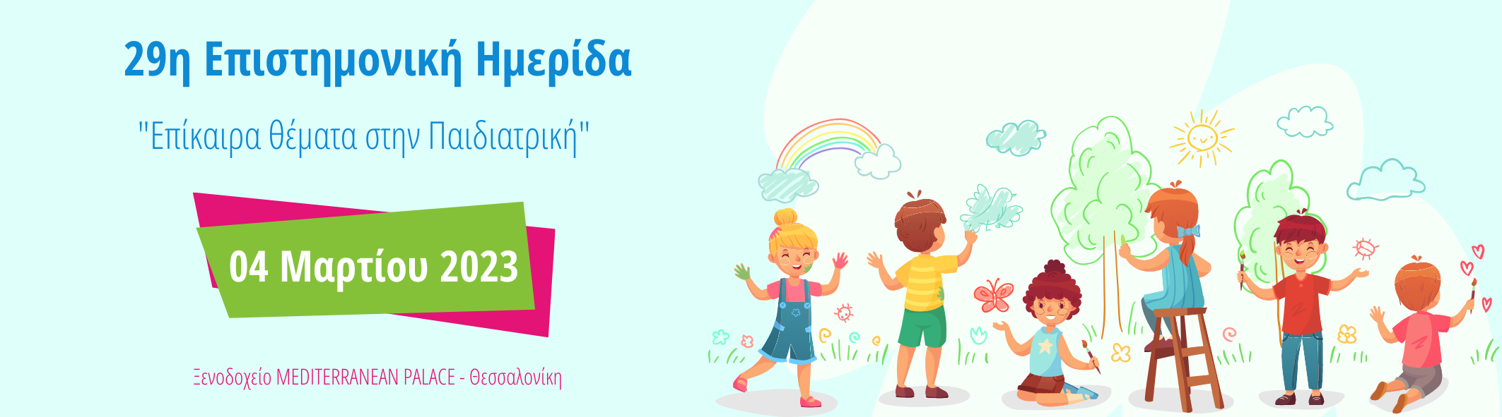 Σας προσκαλούμε να τιμήσετε την 29η Επιστημονική Ημερίδα «Επίκαιρα θέματα στην Παιδιατρική» και ευελπιστούμε ότι θα ανταποκριθούμε στις υψηλές σας προσδοκίες.