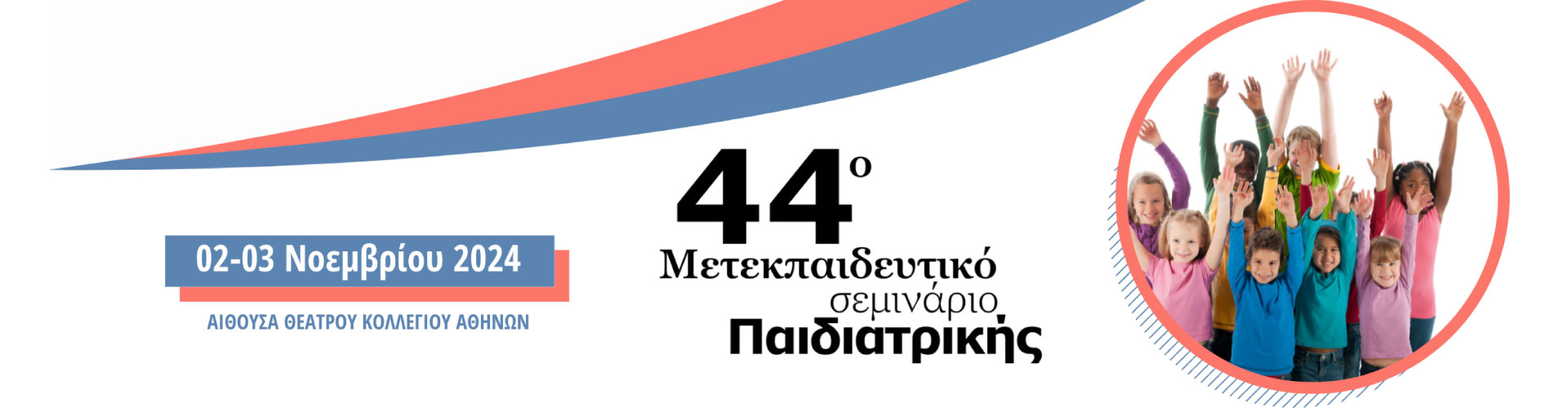 Οι συνεργάτες μου και εγώ με πολλή χαρά σας προσκαλούμε στο 44ο Μετεκπαιδευτικό Σεμινάριο της Β΄ Παιδιατρικής Κλινικής που θα διεξαχθεί το Σάββατο 02 και την Κυριακή 03 Νοεμβρίου 2024 με φυσική παρουσία.