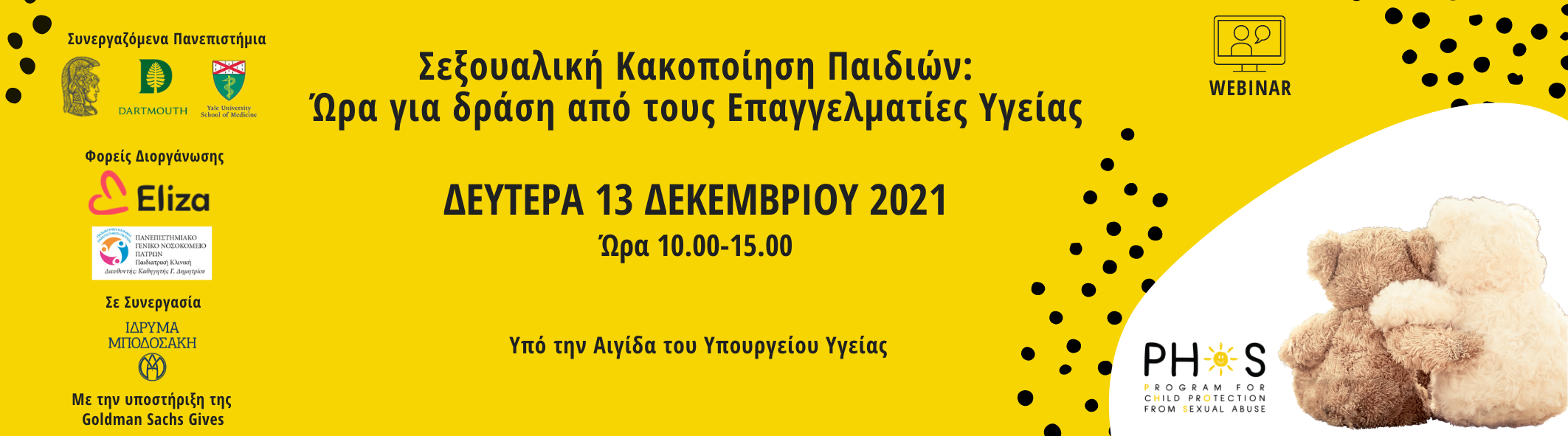 Το 1ο Πρόγραμμα Επιμόρφωσης ενάντια στη Σεξουαλική Κακοποίηση των Παιδιών εκπονείται, υπό την Αιγίδα του Υπουργείου Υγείας, από τη Μονάδα Φροντίδας για την Ασφάλεια των Παιδιών της Β’ Παιδιατρικής Κλινικής ΕΚΠΑ στο Νοσοκομείο Παίδων «Π. & Α. Κυριακού», το Εργαστήριο Ιατροδικαστικής και Τοξικολογίας ΕΚΠΑ και το τμήμα Παιδικής και Εφηβικής Γυναικολογίας της Α’ Μαιευτικής και Γυναικολογικής Κλινικής ΕΚΠΑ στο Νοσοκομείο «Αλεξάνδρα» με την υποστήριξη του μη κερδοσκοπικού σωματείου ΕΛΙΖΑ.
