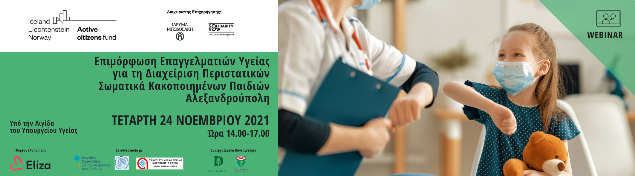 Η Μονάδα Φροντίδας για την Ασφάλεια των Παιδιών της Β’ Πανεπιστημιακής Παιδιατρικής Κλινικής ΕΚΠΑ και το Σωματείο ΕΛΙΖΑ διοργανώνουν το 2ο webinar με στόχο την εκπαίδευση Επαγγελματιών για τη Διαχείριση Περιστατικών Παιδιών με υποψία σωματικής κακοποίησης, το οποίο υλοποιείται στο πλαίσιο του προγράμματος Active citizens fund.