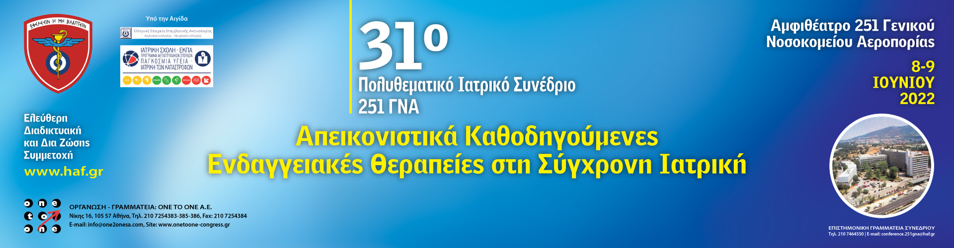 Η Οργανωτική Επιτροπή σας καλωσορίζει στο 31o Πολυθεματικό Ιατρικό Συνέδριο, του 251 Γενικού Νοσοκομείου Αεροπορίας.