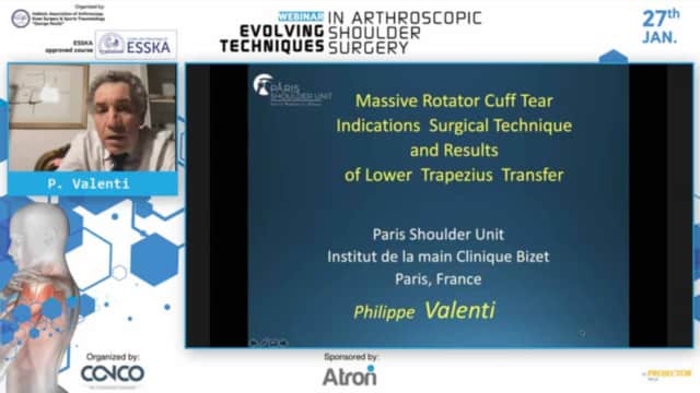 P. Valenti | Massive Rotator Cuff tear. Indications surgical technique, and results of lower trapezius transfer