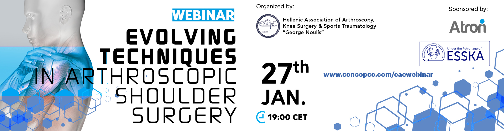 Shoulder experts from around Europe including Nuno Gomes, Jean Kany and Philippe Valenti will present interesting shoulder topics and will answer to all the questions that will be addressed to them. This webinar is under the auspices of the Hellenic Association of Arthroscopy, Knee Surgery & Sports Traumatology ‘George Noulis’.