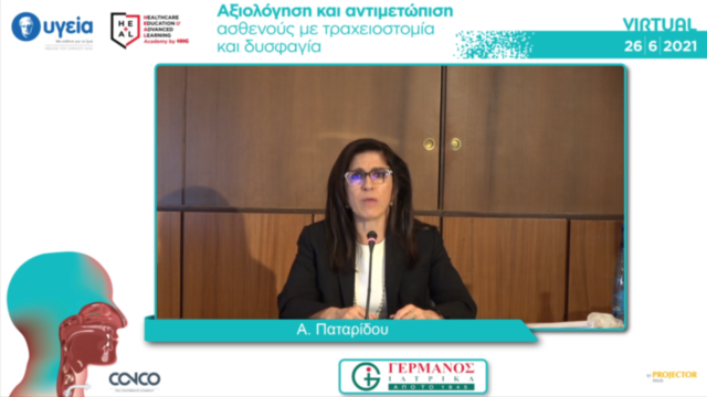 Διαγνωστικές μέθοδοι διερεύνησης δυσφαγίας σε ασθενή με τραχειοστομία «Ενδοσκοπική αξιολόγηση κατάποσης -Χειρουργική αντιμετώπιση» - Α. Παταρίδου