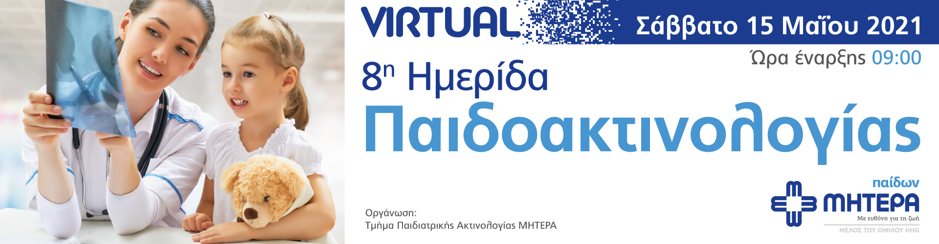 Το Τμήμα Παιδιατρικής Ακτινολογίας του ΜΗΤΕΡΑ σας προσκαλεί στην 8η Ημερίδα Παιδοακτινολογίας, που θα πραγματοποιηθεί το Σάββατο 15 Μαΐου 2021. Οι τρέχουσες και απαιτητικές εξελίξεις με την πανδημία επιβάλλουν τη διαδικτυακή διοργάνωση, που αποδεδειγμένα πλέον αποτελεί ασφαλή αλλά και αποτελεσματικό τρόπο συνεχιζόμενης επιστημονικής επαφής και εκπαίδευσης. Ο ζήλος και η όρεξη για επικοινωνία και ανταλλαγή απόψεων παραμένει αμείωτος από την οργανωτική επιτροπή και τους συμμετέχοντες εξειδικευμένους Ακτινολόγους και Ιατρούς διαφορετικών ειδικοτήτων της Παιδιατρικής, με γνώση, εμπειρία στο αντικείμενο και σεβασμό στην προσέγγιση του μικρού ασθενούς.