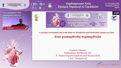 Τι αλλάζει στη κλινική πράξη με βάση τις πρόσφατες κατευθυντήριες οδηγίες ESC/AHA στην μυοκαρδίτιδα-περικαρδίτιδα | Γ. Λάζαρος