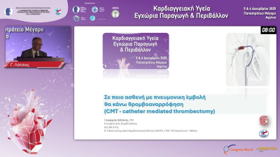 Σε ποιο ασθενή με πνευμονική εμβολή θα κάνω θρομβοαναρρόφηση | Γ. Λάτσιος