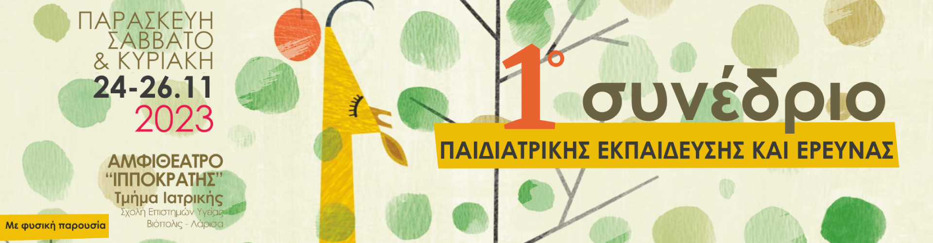 Το 1ο Συνέδριο Παιδιατρικής Εκπαίδευσης και Έρευνας, υπό την αιγίδα της Ελληνικής Εταιρείας Παιδιατρικής Εκπαίδευσης και Έρευνας (ΕEΠΕΚΕ) και σε συνεργασία με την Παιδιατρική Κλινική του Πανεπιστημίου Θεσσαλίας θα πραγματοποιηθεί στις 24 - 26 Νοεμβρίου 2023 στο Αμφιθέατρο Ιπποκράτης, Τμήμα Ιατρικής, Σχολή Επιστημών Υγείας, Βιόπολις, στη Λάρισα.