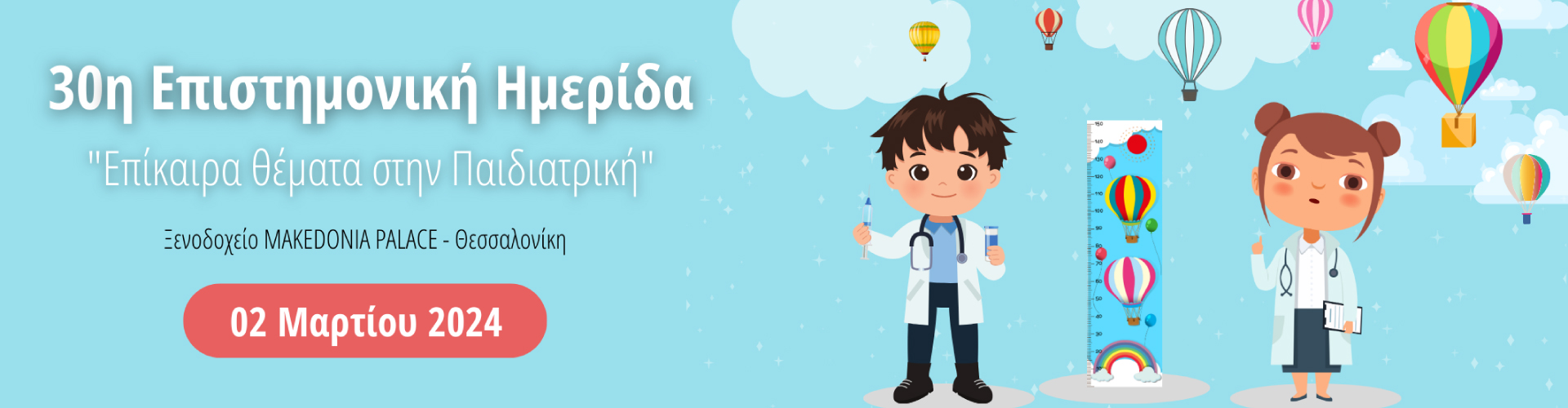 Αγαπητοί συνάδελφοι σας περιμένουμε με ιδιαίτερη χαρά να τιμήσετε την 30η Επιστημονική Ημερίδα «Επίκαιρα θέματα στην Παιδιατρική». Ευελπιστούμε να ανταποκριθούμε στις υψηλές σας προσδοκίες.